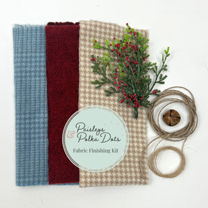 Fabric finishing kit for our snowman shelf. Each kit contains enough fabric to make one scarf and one hat.