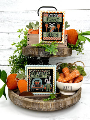 This unfinished wood cross stitch frame, adorned with a sprouting carrot, is perfect for displaying spring or Easter cross stitch projects. This item comes in separate parts for ease of painting and assembly.