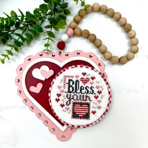 Our unfinished wood heart garland is perfect for displaying your love themed cross stitch pieces. The wood comes in individual pieces that can be easily painted to match your finished cross stitch piece.
