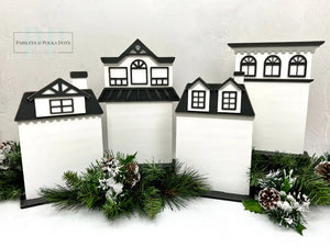 Our unfinished wood city houses are perfect for displaying your home, city, or tiny town cross stitch pieces. Choose one or create that small town feel using our four different styles.