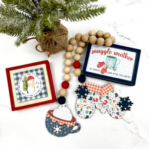 Snuggle up and enjoy some crafting fun with our winter signs and beaded garland DIY wood decor. This delightful craft kit will add charm to any seasonal display, tiered tray, mantel, shelf or our new calendar cubby.