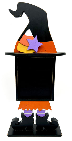 This witch cross stitch display backer is perfect for displaying all of your favorite projects. The rectangle in the middle will hold a finished cross stitched piece up to 4 x 5 inches. The wood is unfinished, so you can paint it any color to match your decor. It is great for cross stitch, needlepoint, and embroidery projects.