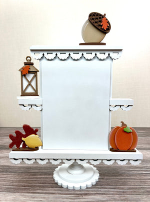 Get crafty this fall with our cozy holiday Seasonal Shapes Unfinished Wood Craft Kit! Although designed to be displayed on our tiered tray cross stitch display, these adorable tiny shapes have endless possibilities. Inside, you'll find an acorn, pumpkin, leaves, and lantern shapes made from MDF unfinished wood. Unleash your creativity by painting them with colors of your choice. Perfect for DIY enthusiasts of all ages, this kit is a fun way to add a touch of warmth to your home decor.