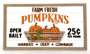 Our farm fresh pumpkin DIY wood decor sign will make everyday feel warm and cozy. Perfect for displaying on a countertop, shelf, or mantel.
