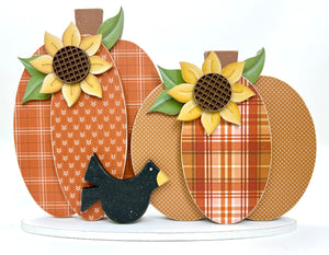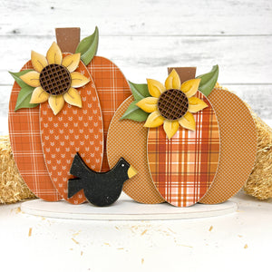 Bring the quintessential fall feeling into your home with this Pumpkin Duo with Sunflowers Wood Decor! This fun DIY kit comes with the wood, paper, and instructions you need to craft two cute pumpkins adorned with sunflowers and crows, for a look that says "fall is in the air!" Jump into the autumn spirit in a jiffy with this cozy and sweet decor set!