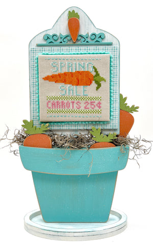Psst… fresh carrots, straight from the craft patch! Our Carrots For Sale Pot crossstitch display is the perfect way to show off your spring stitchery with garden-fresh charm. Shaped like a flower pot and sprouting with adorable little carrots, this unfinished wood piece is ready for your personal touch. Paint it a color that makes your crafty heart hop with joy!