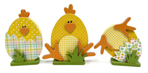 Hop into spring with our Chicks Trio Wood Decor! This DIY craft kit features three adorable chicks perfect for your Easter and spring decorations. With the included wood and paper for decoupaging, you'll have a hoppin' good time creating these cute little chicks.