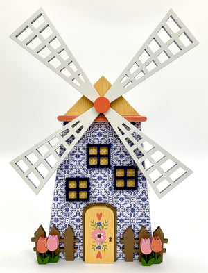 The billowing sails of this charming windmill covered in the classic blue and white delft pattern reminiscent of Holland will transport you to the canals of the Netherlands where tulips and daffodils mark the arrival of Spring. This is a DIY craft kit.