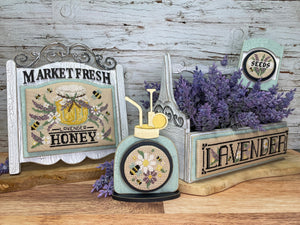 Our vintage market sign will have you dreaming of blooming bouquets and homemade treats. We teamed up with Erin Elizabeth Designs to offer you this lovely Lavender Honey market sign to showcase your completed cross stitch masterpiece. The unfinished wood can be painted in any color you please. Feeling a bit overwhelmed? No worries, we've got you covered with an easy-to-follow tutorial. CROSS STITCH SOLD SEPARATELY BY ERIN ELIZABETH DESIGNS.