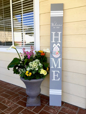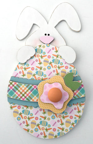 This bunny holding an egg is an additional insert for the "welcome to our home" porch sign.  The wood is laser cut from 1/8 inch MDF wood. The kit includes the bare wood, paper, magnets for attaching it to the board, and instructions.  Porch sign sold separately. Paint not included.