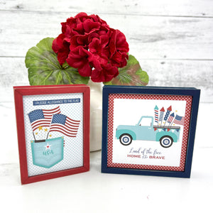 Bring your 4th of July decor to life with some patriotism and pizzazz! This wood block craft kit comes with the wood, paper, and instructions to create some super ‘star-spangled’ decorations! You'll be ready to add a bit of red, white, and blue, to your tiered trays, shelves, or our custom ladder.