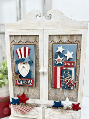 Designed to fit perfectly on our country cabinet (sold separately), these interchangeable panels make it easy to swap out your seasonal décor. Whether you're decorating for the 4th of July, Memorial Day, or simply want to salute the USA all year long, this kit is the perfect addition to your patriotic crafting collection.