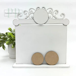 Our unfinished wood curly frame cross stitch display is the ideal way to showcase your stunning completed cross stitch projects. The top of the frame features a whimsical curly pattern with a center circle, perfect for showing off a smaller cross stitched piece or you can add one of our tiny charms (sold separately).