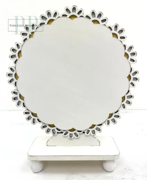 Add a little spring time charm to your home with our Daisy Edge Pedestal Frame. Made from unfinished wood, this frame perfectly displays your round cross stitch pieces, while the edge adds a touch of whimsy with its daisy-like lace design. Personalize it by painting it in your favorite color.