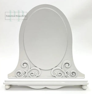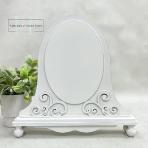 This unfinished wood frame is perfect for displaying oval cross stitch pieces. With a beautiful fleur design on the front, it adds a unique touch to any project. This DIY kit is ready to be painted, making it customizable for any decor.
