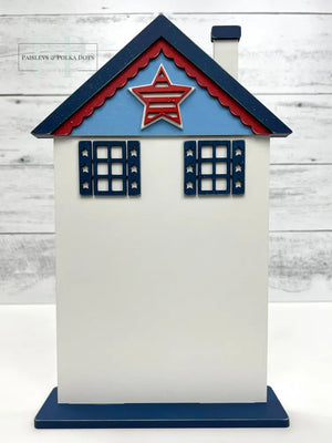 Patriotic City House #2-Unfinished Wood Cross Stitch Display