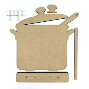 Our unfinished Wood Cooking Pot Cross Stitch Display is perfect for displaying finished cross stitched pieces. The wood comes with individual pieces for ease in painting-you can paint the pot any color you choose for a personal touch. Includes a base so your finished piece will stand freely. Show off your "kitchen themed" cross stitch and make a decorative statement!