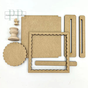 Do you have a favorite cross stitch project that you would like to display? Our wood cross stitch display frame is the perfect way to show off your work. The simple design features a 5.5 inch wide by 5.5 inch tall opening with a scalloped edge finish. The frame includes a candlestick and round scalloped base to complete the look. Not a cross stitcher; this frame also works to showcase a favorite phrase or photo.