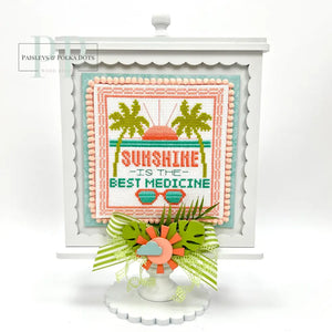 • paint, finished cross stitch piece, ribbons, trims, and extra embellishments NOT included