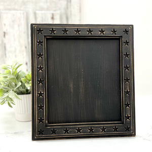 Display your finished needlework in this Seeing Stars Cross Stitch Display Frame, a rustic wooden cross stitch frame featuring a decorative star cut-out border and classic farmhouse style. Designed specifically for showcasing cross stitch and embroidery projects, this layered wood frame creates a dimensional shadow-box look that beautifully highlights your stitching. Perfect for patriotic, primitive, and seasonal decor, this handcrafted display frame turns your finished piece into a charming home accent for shelves, mantels, and tabletops.